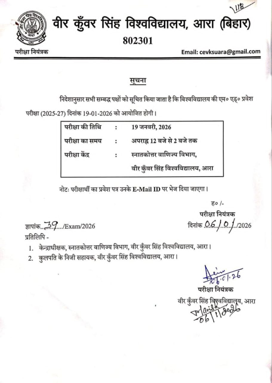 | अपने कॉलेज के सभी के सूचना के लिए वीर कुंवर सिंह यूनिवर्सिटी के ग्रुप से अवश्य जुड़े। |